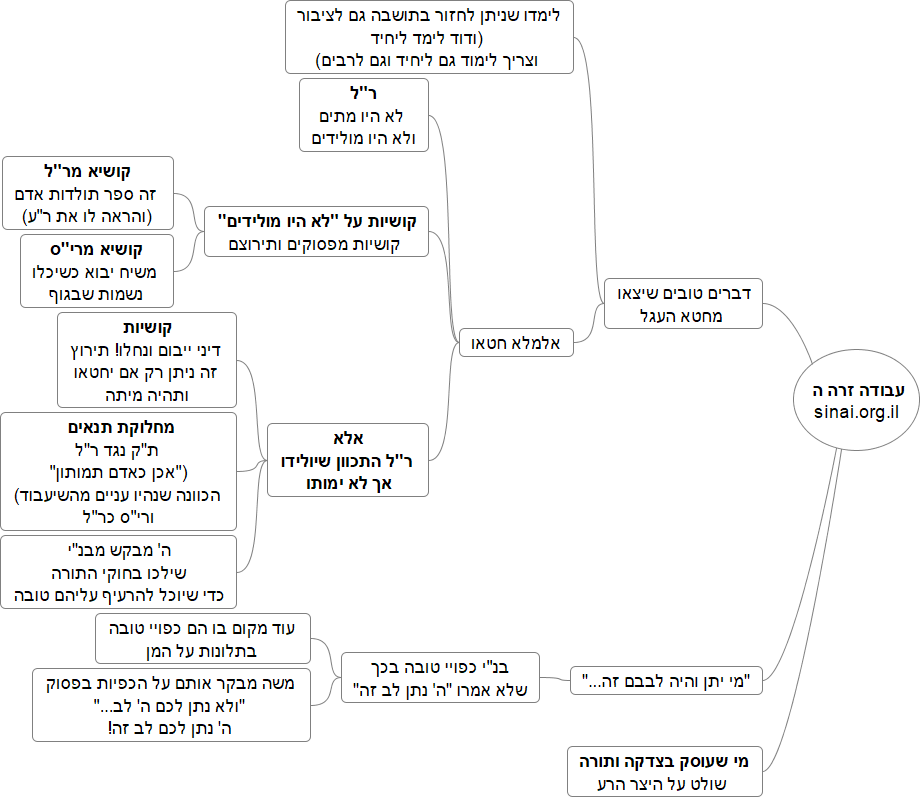 קושיות על "לא היו מולידים" – קושיות מפסוקים ותירוצם. קושיא מר"ל – זה ספר תולדות אדם (והראה לו את ר"ע). קושיא מרי"ס – משיח יבוא כשיכלו נשמות שבגוף.