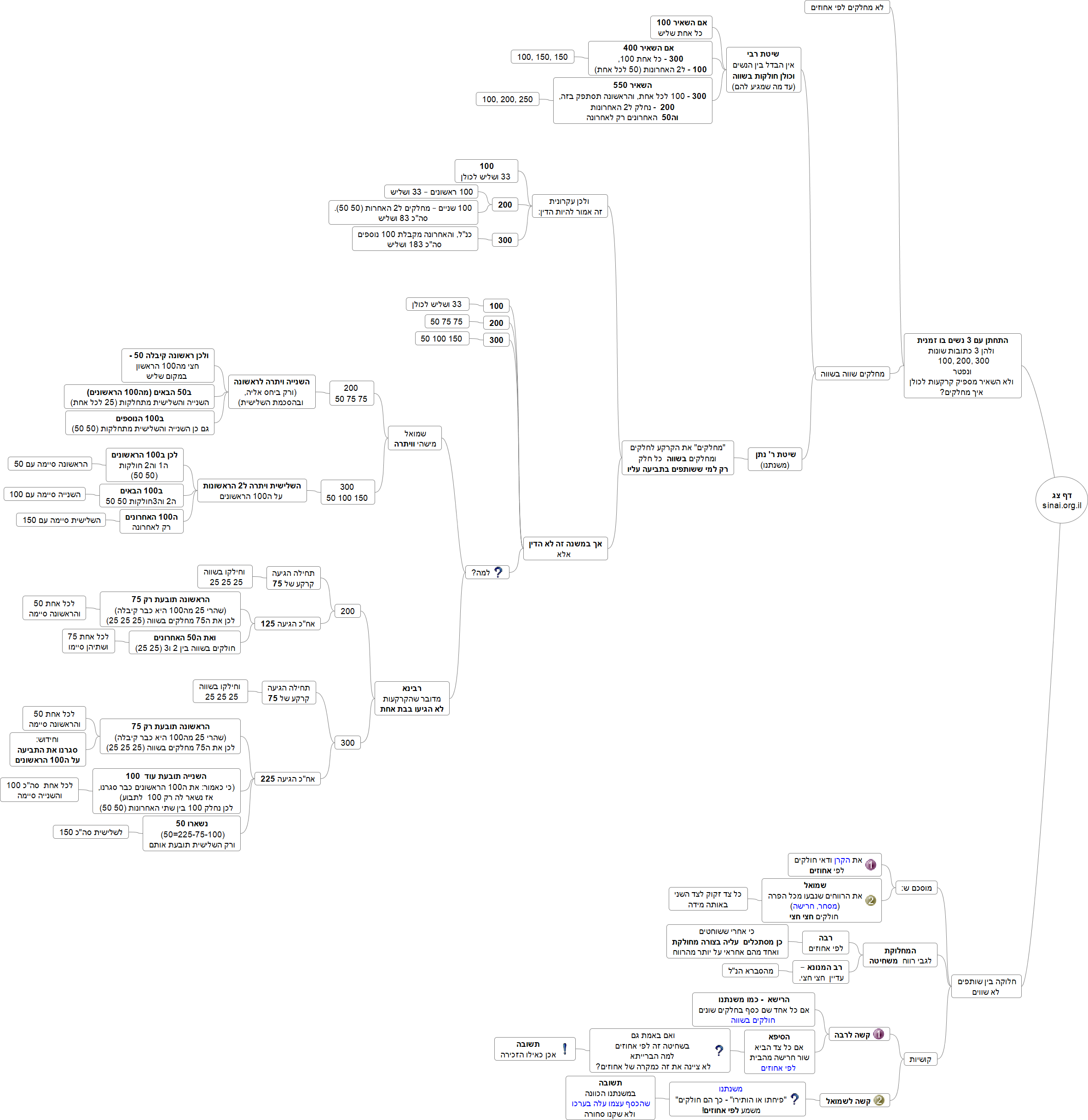 התחתן עם 3 נשים בו זמנית, ולהן 3 כתובות שונות: 100, 200, 300. נפטר, ולא השאיר מספיק קרקעות לכולן, איך מחלקים?