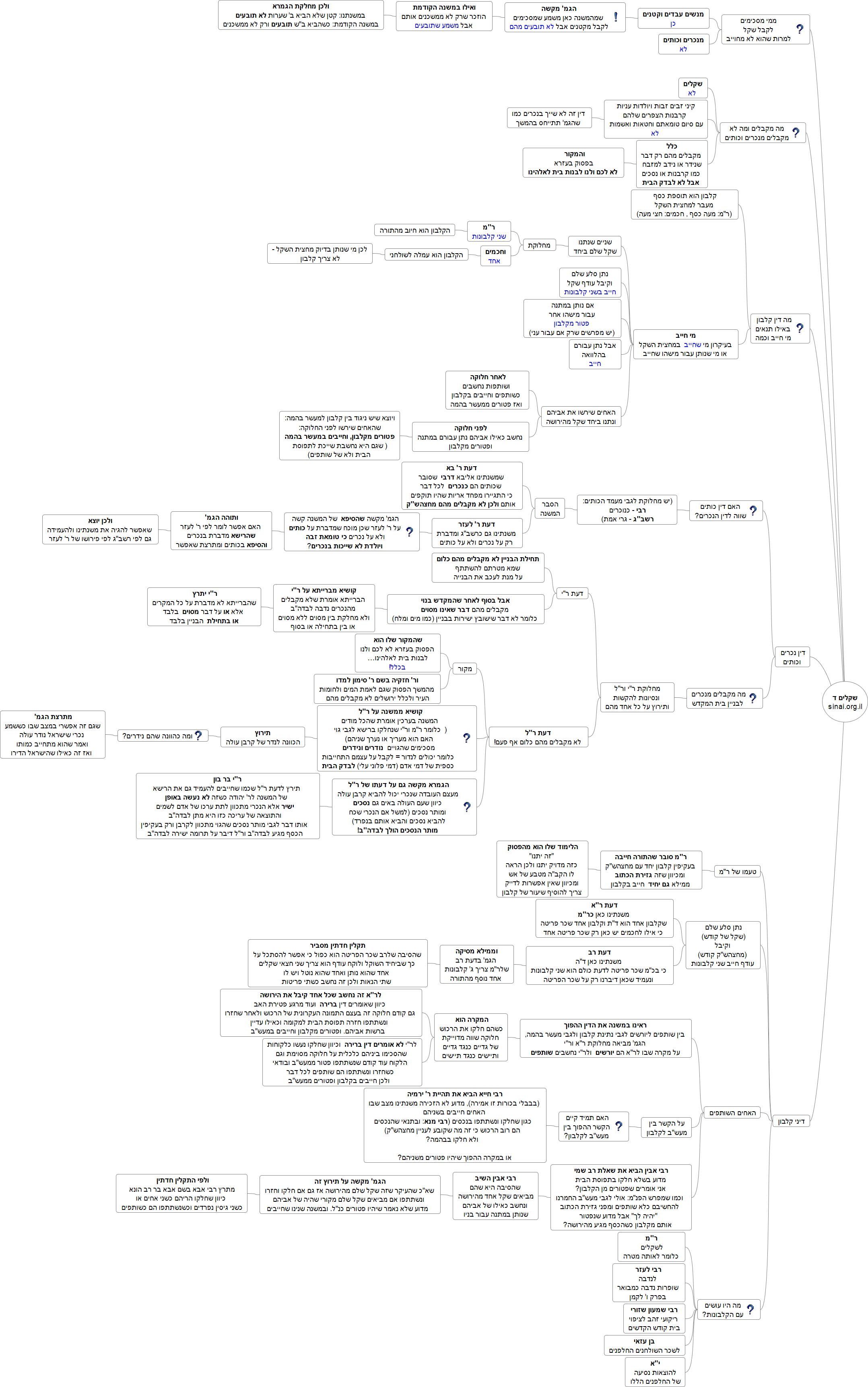 - 1.שניים שנתנו שקל שלם ביחד: מחלוקת ר"מ – שני קלבונות וחכמים: אחד.