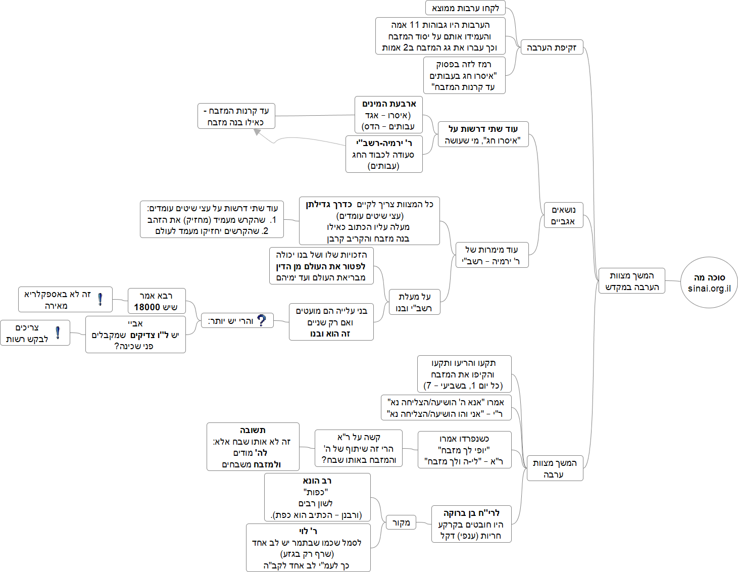 - הערבות היו גבוהות 11 אמה, והעמידו אותם על יסוד המזבח, וכך עברו את גג המזבח ב2 אמות.