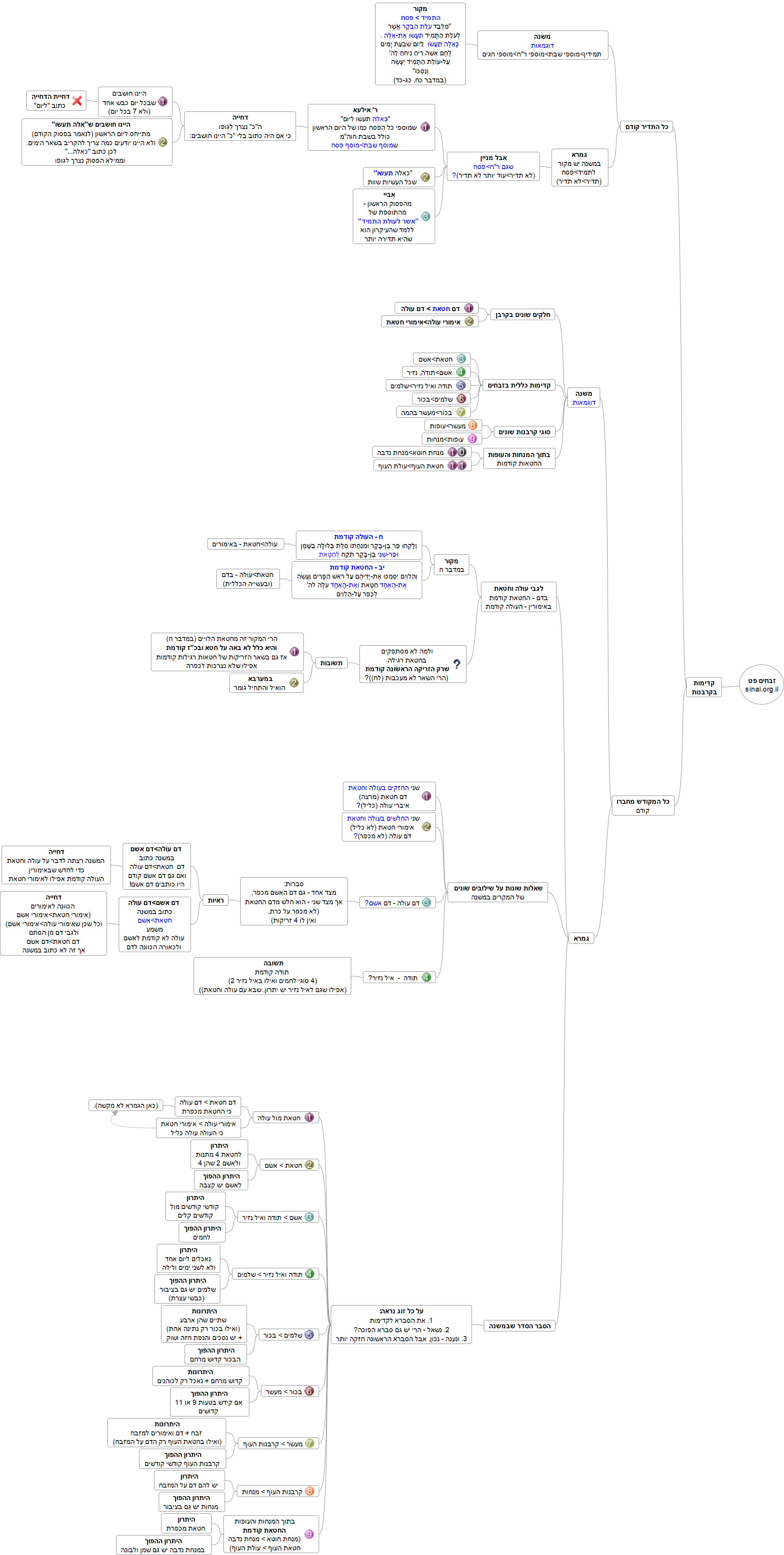 חוזק ביחס למי שאחריו | מכפר, 4 נתינות | כליל | קדש קודשים | נאכלים ליום 1 + לחם | 2 שהן 4 + נסכים חזה ושוק | קדשו מרחם + לכהנים | זבח + דם ואימורים למזבח | מיני דמים | מכפרת | ||||